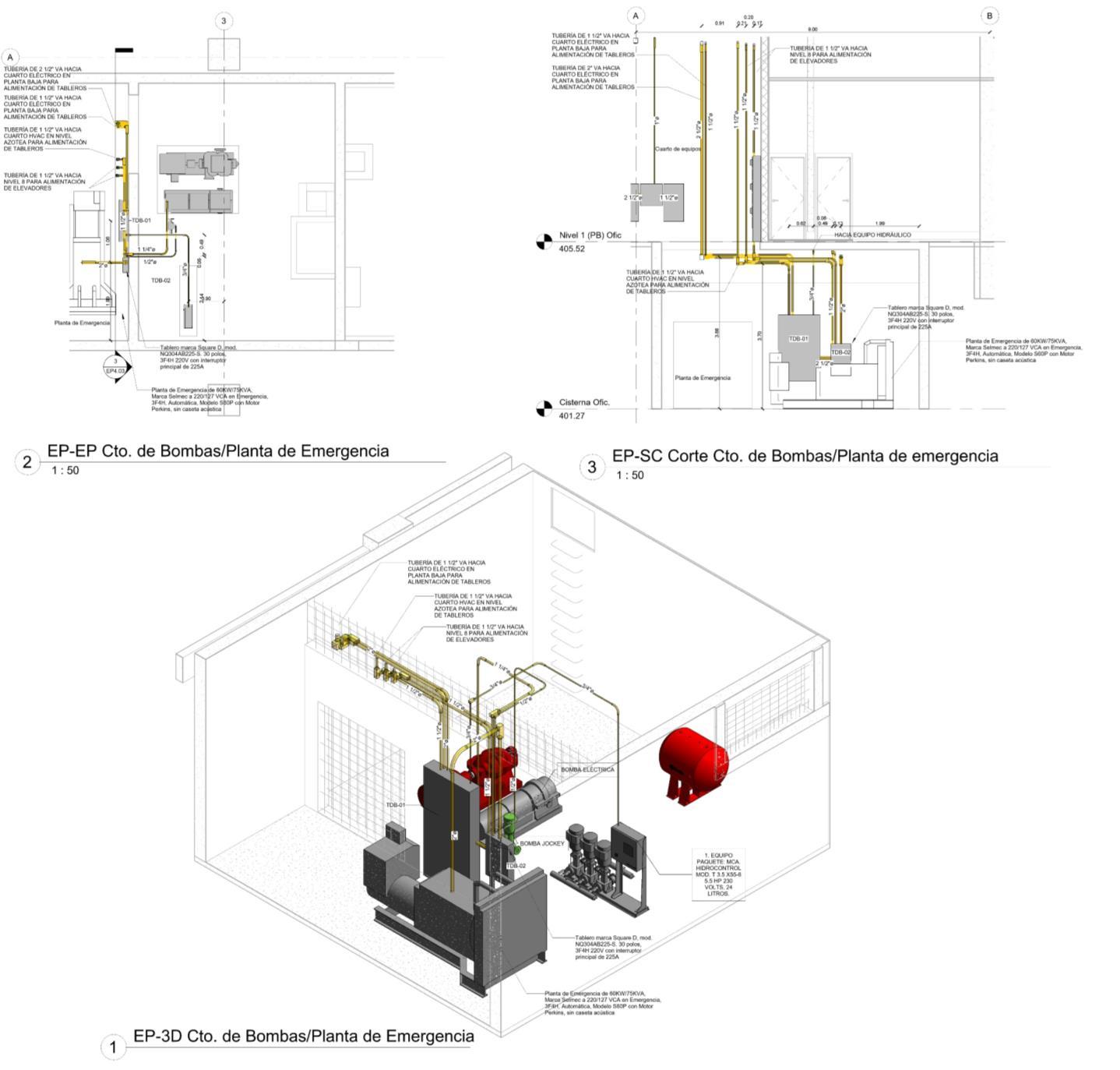 • Modelado, documentación y coordinación. (Arquitectura y MEP)