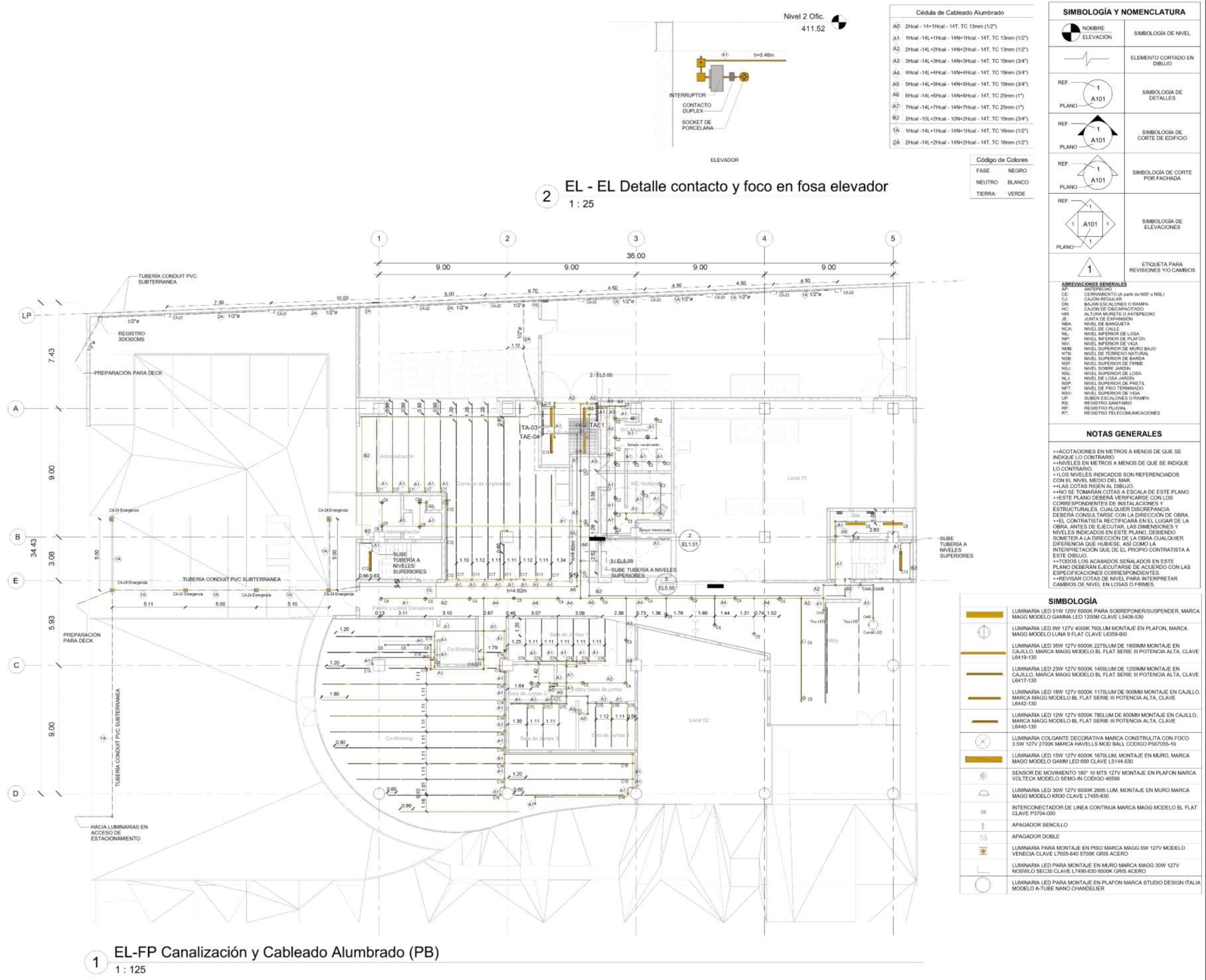 Documentación de planos eléctricos con cédula de cableado y detalles.