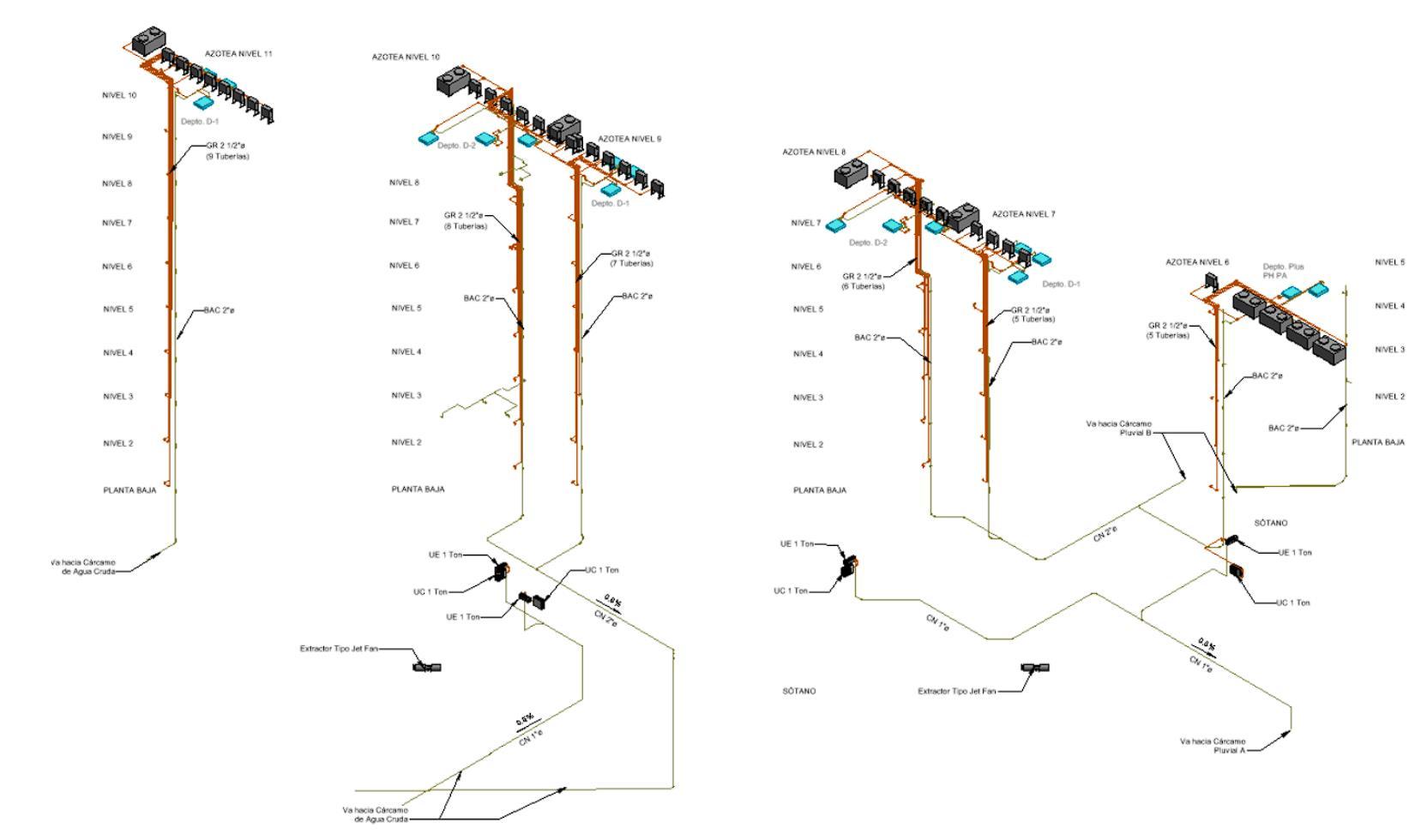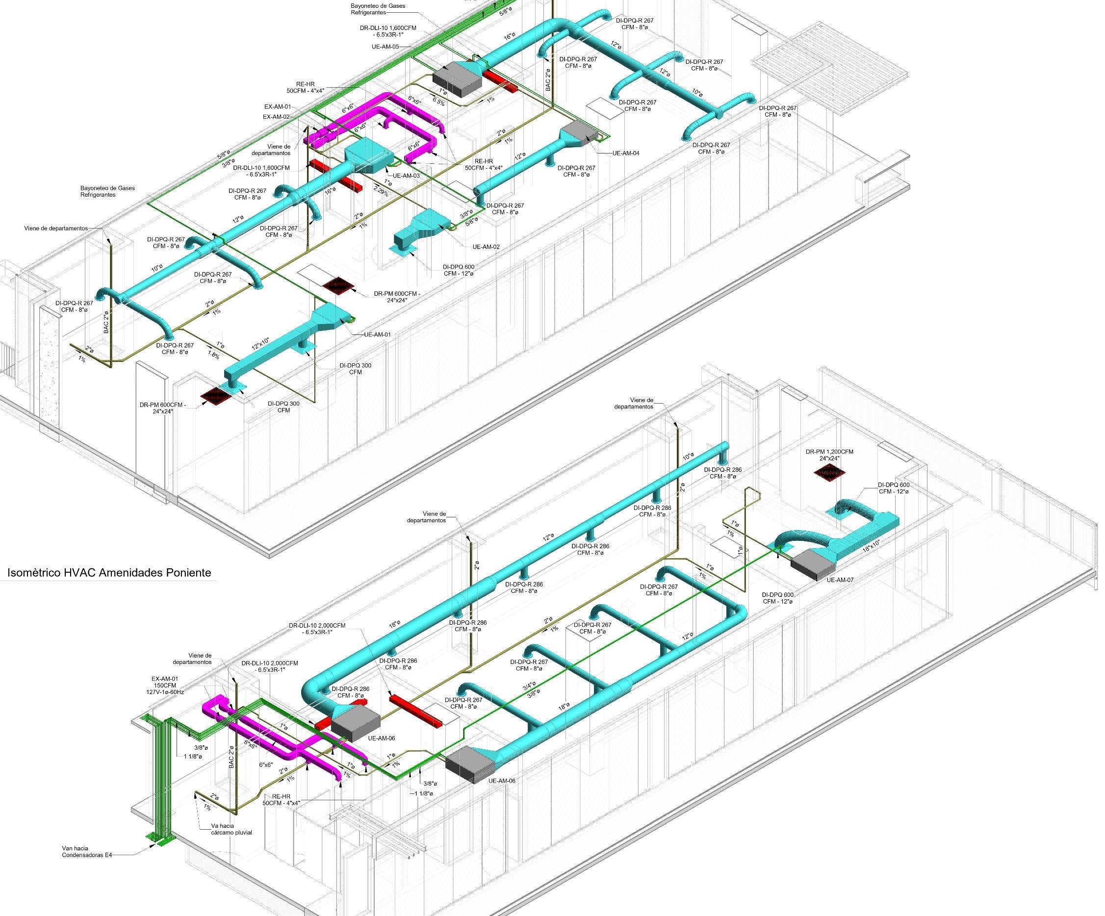 • Isométricos de Ductería y Equipos de Aire Acondicionado.