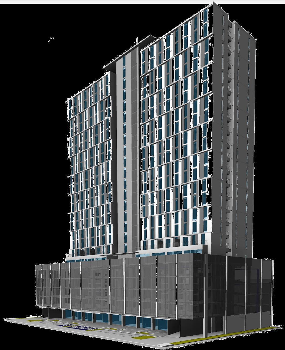 • Conjunto de Usos mixtos 37 pisos de departamentos (185 deptos.), oficinas, amenidades y locales