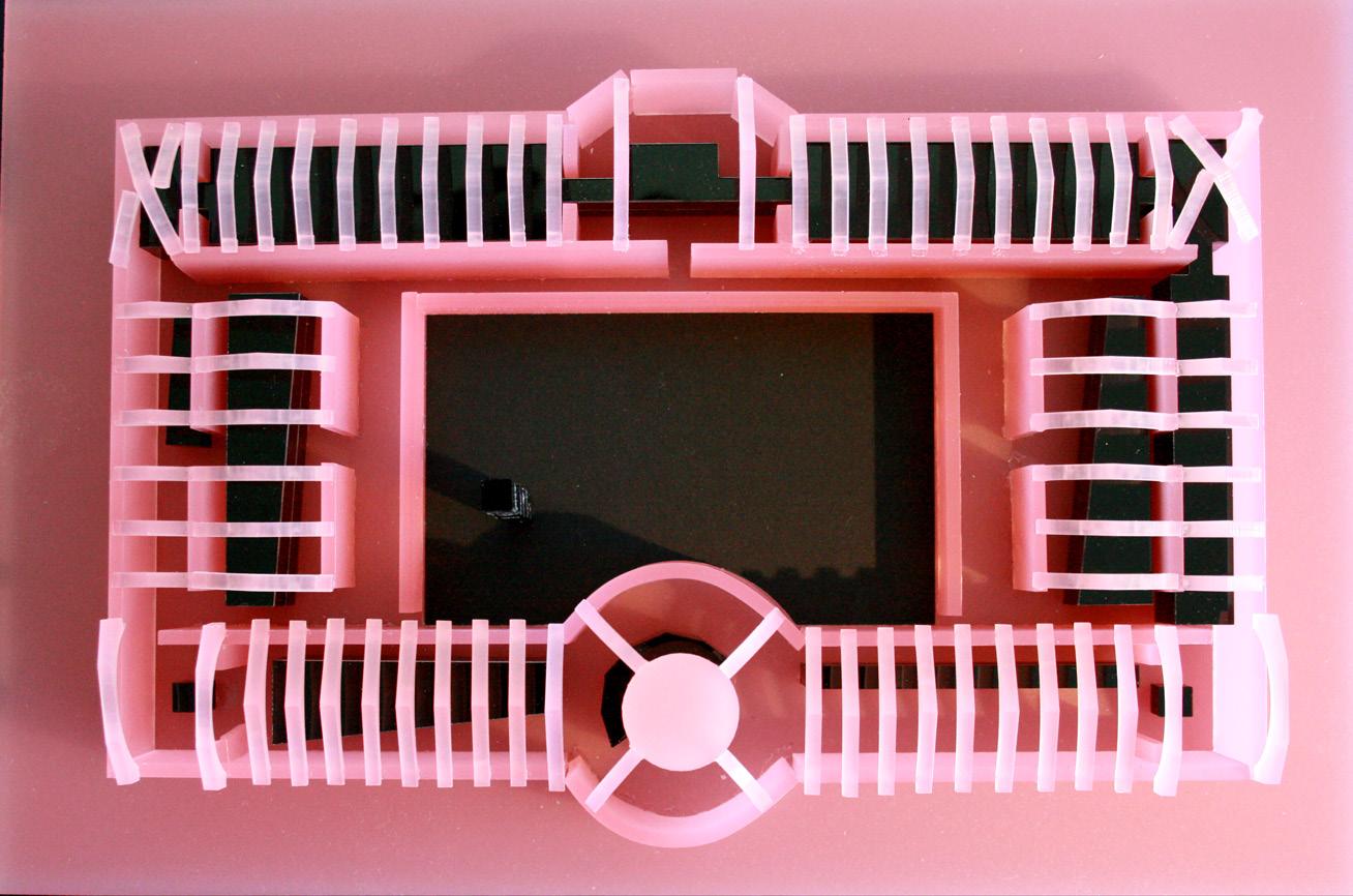 tot een publiek paleis, een karkas, dat een variëteit aan publieke functies herbergt, een plek die geen restricties kent, de geleefde ruimte van het individu centraal stelt, de grenzen tussen exterieur en interieur doet vervagen, de mogelijkheid tot toe-eigening biedt en nieuwe situaties schept en produceert voor het samenzijn met de ander. FUTUR PALAIS.