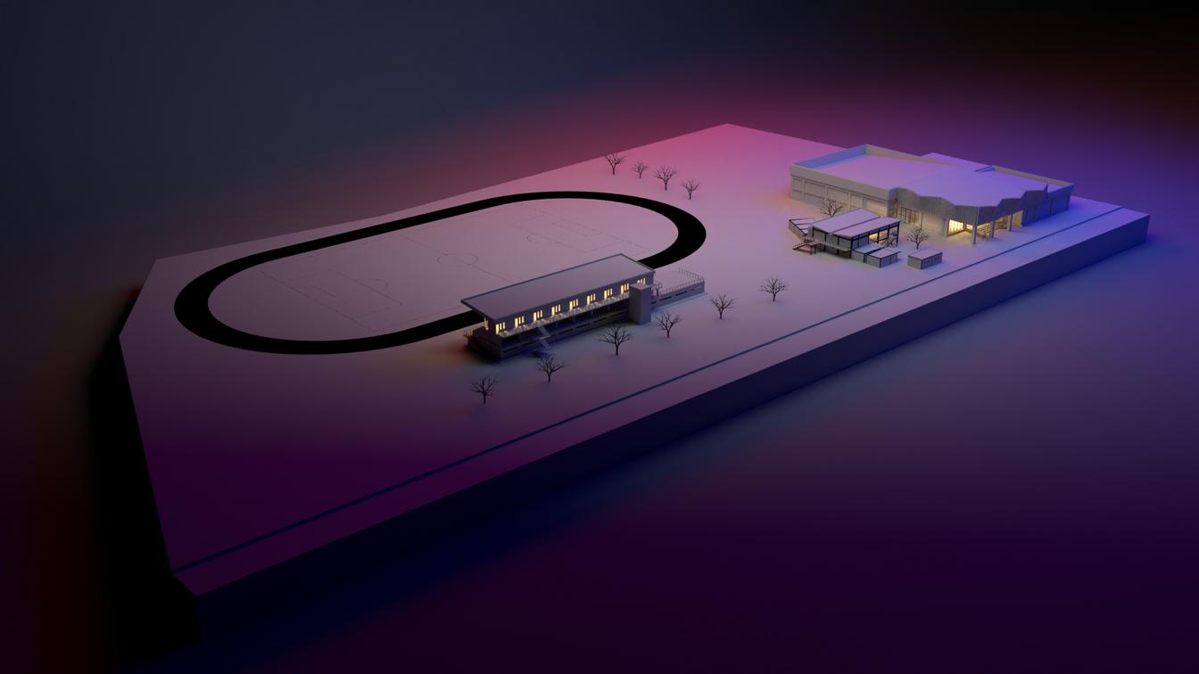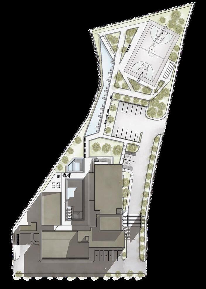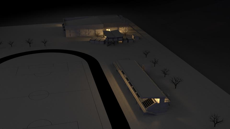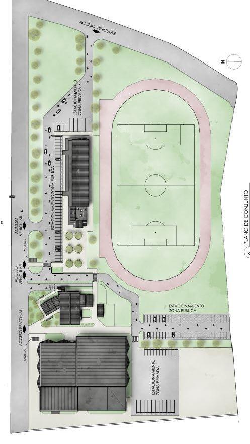 La idea principal del diseño es la creación de espacios abiertos y cerrados que se interconecten entre si. Por un lado tenemos el polideportivo cerrado este quedo denominado como polideportivo "indoor" y alberga disciplinas que se practican bajo techo como es el caso del boxeo, la gimnasia y boccia y por el otro el tenemos una gradería que a sido denominada como polideportido "outdoor" y alberga disciplinas al aire libre como el atletismo y el fútbol, ambos espacios se conectan por medio de una zona comercial..