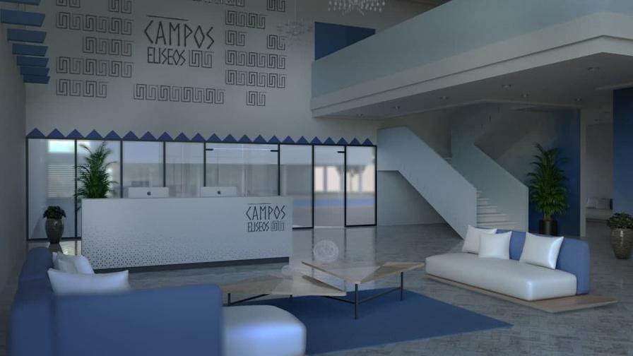 EL HOTEL CAMPOS ELISEOS Es un hotel con un estilo que proviene entre una combinación de lo minimalista, sencillo y de formas simples con la arquitectura cicládica como la que encontramos en Santorini, Grecia, dicha parte.