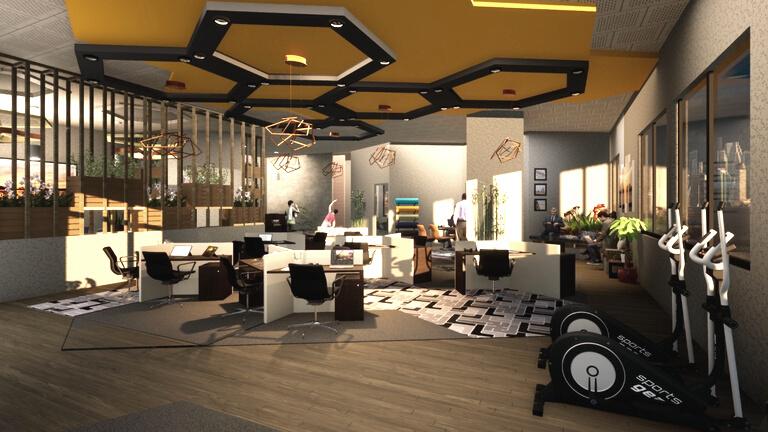 BE-OFFICE es una propuesta de oficinas que busca promover la relación entre cada uno de sus usuarios y garantizar no solo que estos tengan una mayor productivad sino también un mayor confort y bienestar tanto físico como mental.