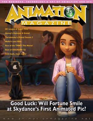 The talented Mr. Selick is also one of the eight brilliant industry veterans who will receive Animation Magazine’s Hall of Fame honors in November. The 2022 class also in cludes Sony Animation president Kristine Belson, Jorge R. Gutierrez (The Book of Life, Maya and the Three), Nickelode on and Paramount Animation president Ramsey Naito, Pe ter Ramsey (Spider-Man: Into the Spider-Verse, Lost Ollie), Mark Swift (Puss in Boots: The Last Wish), Genndy Tarta kovsky (Primal, Samurai Jack, Dexter’s Laboratory) and TeamTO (International Studio of the Year). We are thrilled to have these talented folks at the opening night gala event of our World Animation Summit at The Garland in N. Hollywood. Our event director Kim Derevlany is working long hours to make sure this year’s Summit is one of the most star-studded, insightful and jam-packed animation outings ever! (You can find out more by visiting animation magazine.net/summit.)