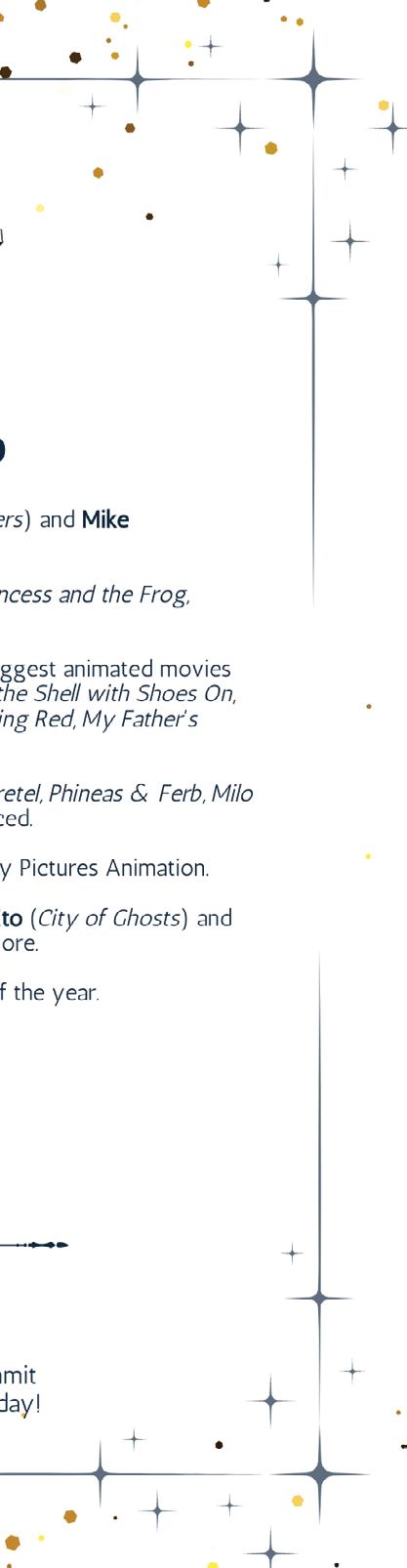 The animation industry is known for creating fun and innovative content while implementing new state-of-the-art technologies. Our productions make worldwide au diences laugh, dream and have the time of their lives. We have been blessed throughout our careers to work on some of our favorite shows and films, winning awards, and enjoy ing just how cool our jobs are.