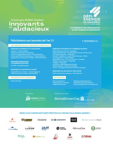 Grand gala BOMA Québec 3E ÉVÉNEMENT RECONNAISSANCE DU DÉFI ÉNERGIE EN IMMOBILIER