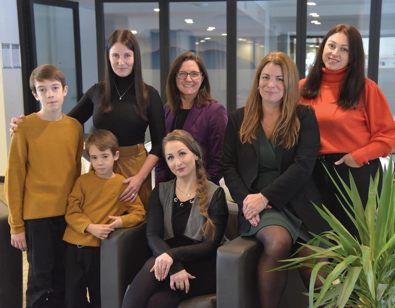 De gauche à droite, derrière : Volodymyr Yukhymchuk, fils de Liliia, 11 ans ; Liliia Yukhymchuk, résidente ukrainienne accueillie par LSR GesDev/Albert Immobilier ; Lucie Laliberté, vice-présidente Développement et Construction, LSR GesDev ; Caroline Girard, vice-présidente Gestion immobilière, Groupe Devimco ; Irina Kuzmenko-Diomande, résidente ukrainienne accueillie par Groupe Devimco ; devant : Vladyslav Yukhymchuk, fils de Liliia, 6 ans, et Olga Cauia, gestionnaire immobilière principale, Albert Immobilier