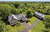 $999,000. TWO super creative, eco-friendly homes on almost 16 wooded acres. Energy efficient, Scandinavian masonry fireplace. Picture perfect setting.