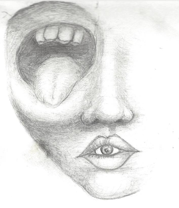 It’s a physical ache, the pressure in my chest� My heart squeezes tighter and tighter, compressing as I tuck my feelings away I feel like I am going to shrivel away into nothing, because if she does not see me, I won’t exist Or my heart will explode, unable to contain the mounting tension, blood splattering onto her shocked, disgusted face as I fall limp at her feet� She will nudge my prone body aside with her toe, ever so gingerly so as not to contaminate her blinding white Air Force Ones� I lie before her, gasping and spasming like a fish out of water, unable to breathe� Maybe the pain in my chest is not my heart, but my lungs, desperate for oxygen, because she is air� Hiding is torture, burning within, hiding is death