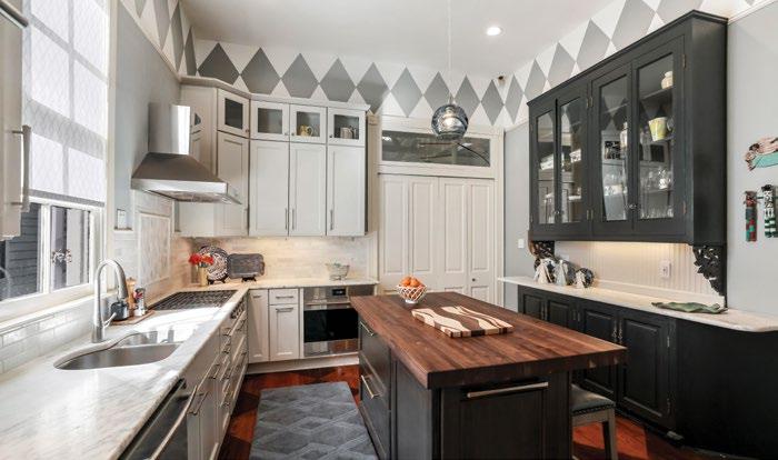 Above: This Slidell kitchen has a full bar, and access to the boat dock. Inset: This Garden District home is replete with a pool, workout room, and cabana. with Boxwoods,” explains Brian Sublette, ASLA, of DalySublette. “One must be very careful with boxwoods as they have become subject to blight, a fungal disease which can enter the property from another property with infected plants. But there are new heartier varieties of boxwoods now, and we often substitute dwarf Yaupon Hollies.”
