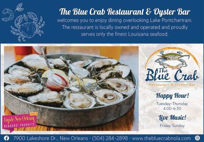 INSIDE NEW ORLEANS is published bi-monthly (February, April, June, August, October, December) by JBL Publishing, LLC, PO Box 7603, Metairie, LA 70010-7603 as a means of communication and information for greater New Orleans, Louisiana. Bulk Postage paid - New Orleans, LA. Copyright ©2023 by JBL Publishing, LLC. No part of this magazine may be reproduced without written consent of publisher. Publisher is not responsible for unsolicited manuscripts and artwork. Inside New Orleans Magazine is created using the Adobe Creative Suite on Apple Macintosh computers.