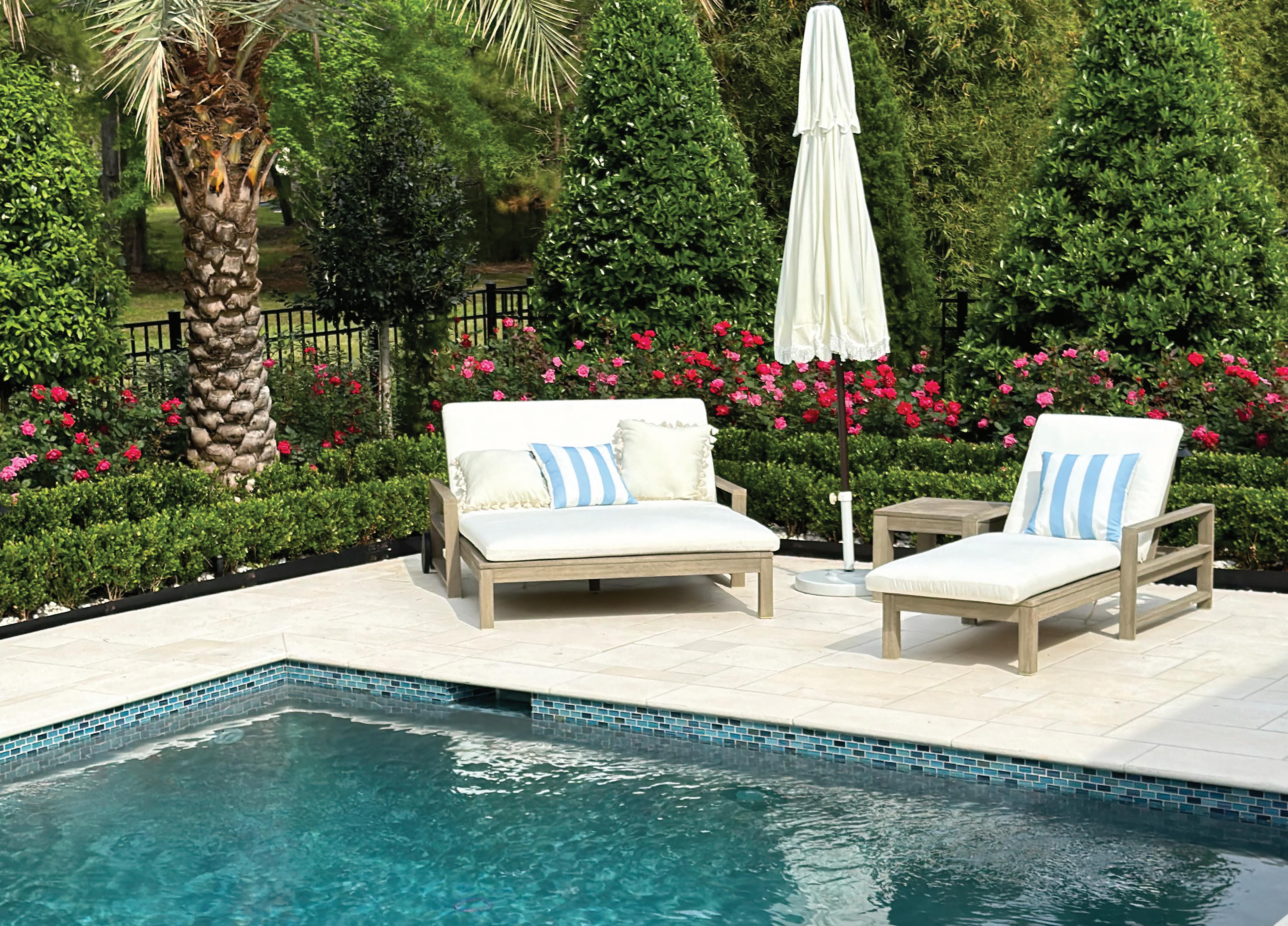 appliances, and a backsplash, and updating every bathroom. Outside, they added a patio area and an outdoor kitchen with a gas fire pit and redesigned the landscaping. Bringing it charmingly together, the home’s color palette is inspired by an oyster shell, incorporating shades of stunning ivory, gray, light taupe, and pale blue.