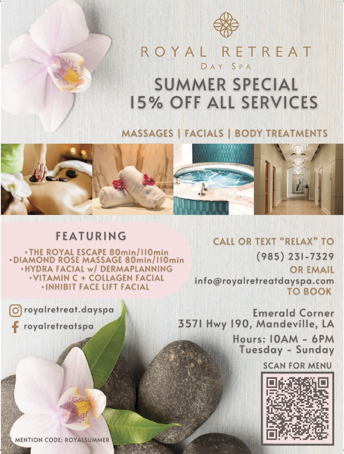 Relax with us Monday - Saturday stonecreekclubandspa.com • 985-801-7120