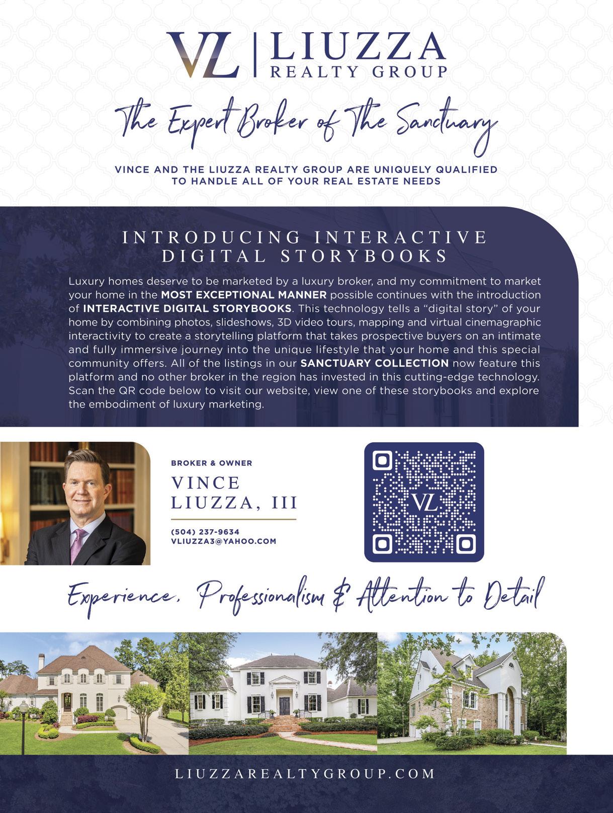 The Sanctuary Living is published bi-monthly (March, May, July, August, October, December) by JBL Publishing, LLC, PO Box 7603, Metairie, LA 70010-7603 as a means of communication and information for greater New Orleans, Louisiana. Bulk Postage paid - New Orleans, LA. Copyright ©2023 by JBL Publishing, LLC. No part of this magazine may be reproduced without written consent of publisher. Publisher is not responsible for unsolicited manuscripts and artwork. Inside New Orleans Magazine is created using the Adobe Creative Suite on Apple Macintosh computers.