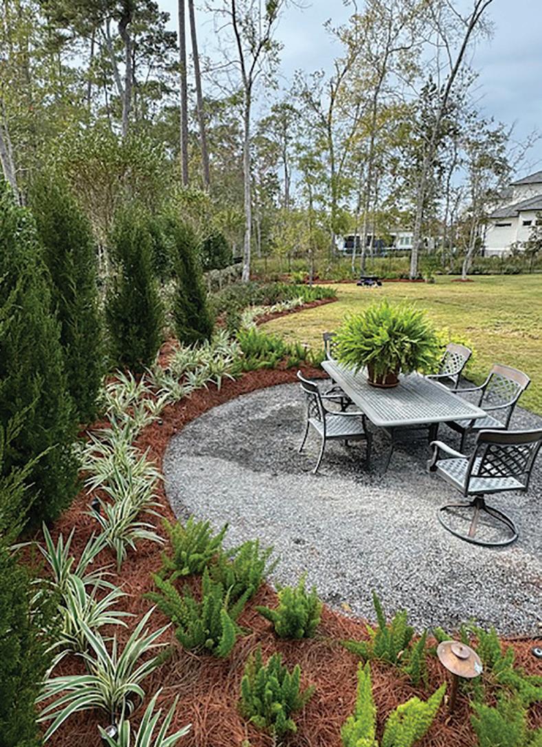 the installation of outdoor lighting. Strategically placed throughout the garden and the trees, this feature added a soft and lovely ambiance to the entire space.