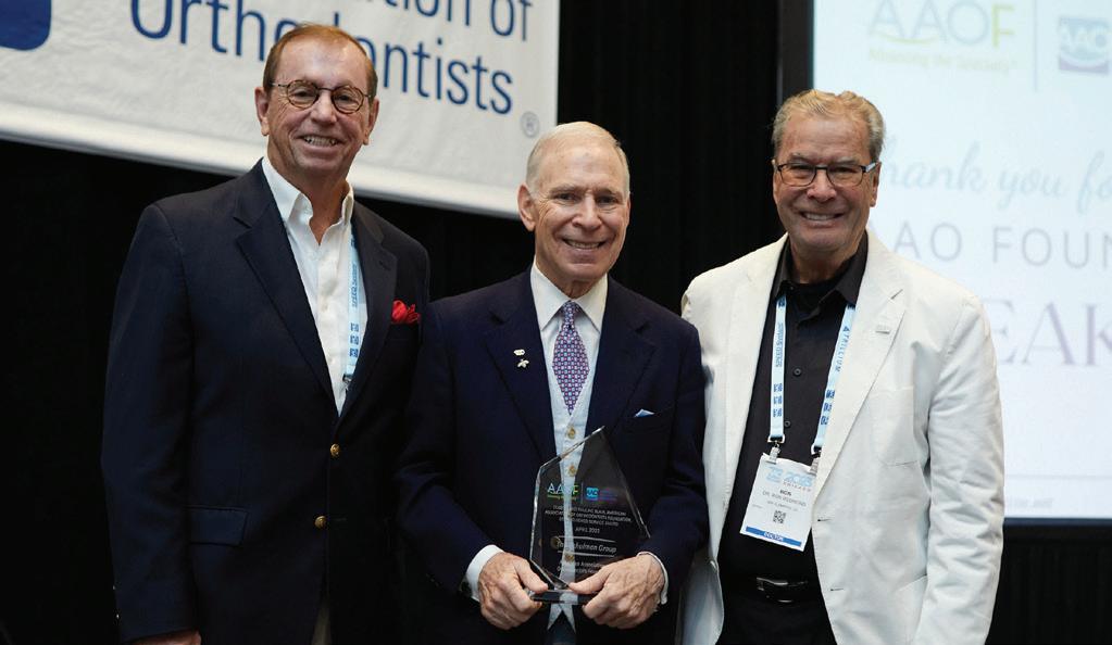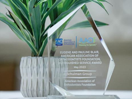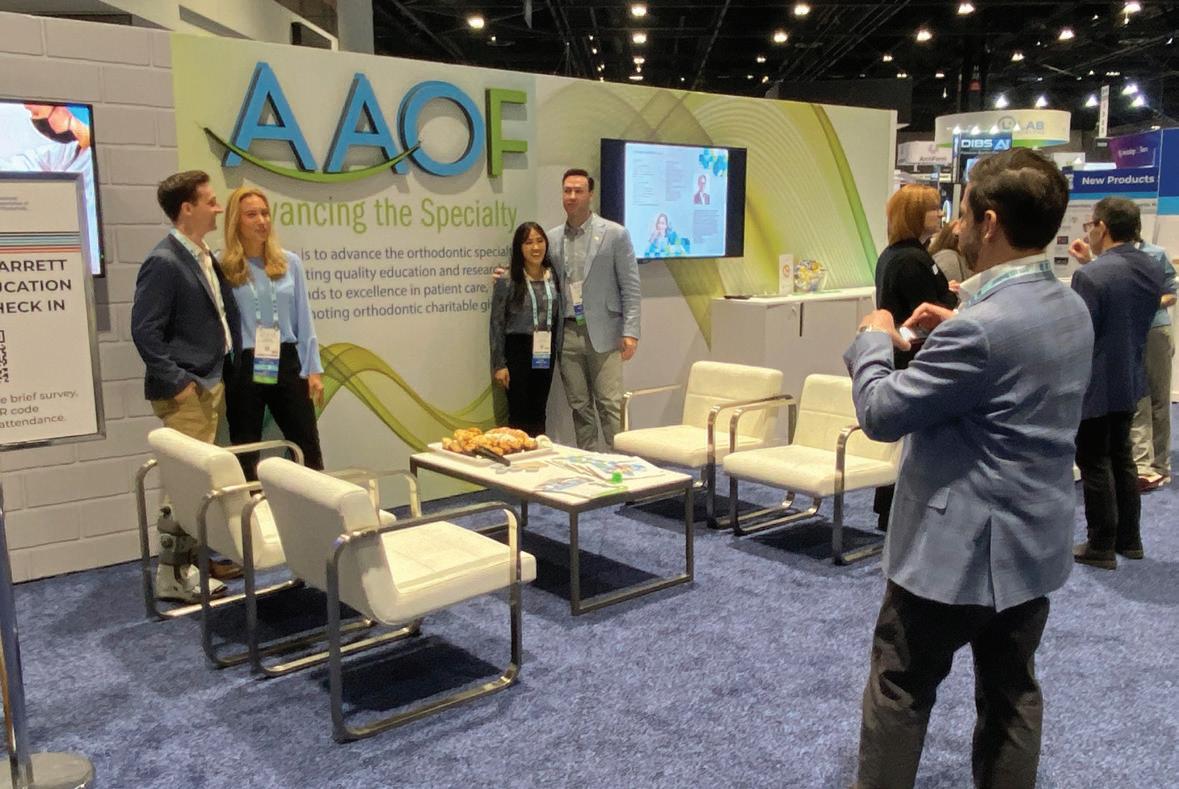 exhibit hall as they became eligible for the Fred A. Garrett Resident Education Program, which provided an incentive of $400 to offset expenses for them to attend this valuable conference. We hosted our second Donor Appreciation Cocktail Reception and raised a glass to our supporters. The annual AAO Foundation Breakfast was a sold-out event! We recognized several award recipients, including the 2023 Eugene and Pauline Blair Distinguished Service Award presented to the Schulman Group. Dr. Aron Dellinger received the 2023 Raymond George, Sr. Award recipient for Outstanding Donated Orthodontic Service.