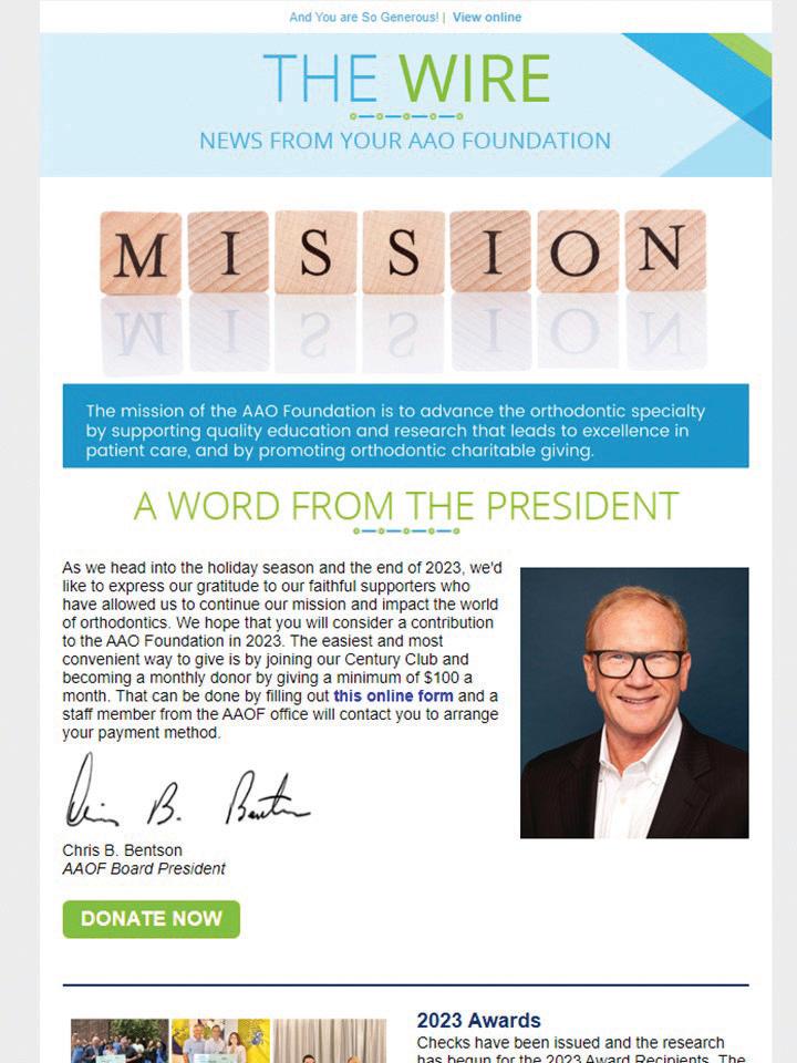 As my time as President of the AAO Foundation Board of Directors ends, I invite you to continue supporting the mission and work of the Foundation and ensure that the specialty continues well into the future.