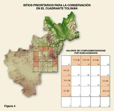tes de muestreo. Los resultados del análisis de complementariedad se muestran en la figura 4 que también presenta la disposición de las prioridades de conservac ión.