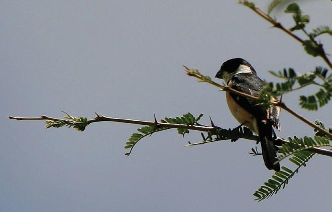 En el Jardín Botánico lo encontrarás volando o posado sobre los arbustos, cercano a la zona de edificios.