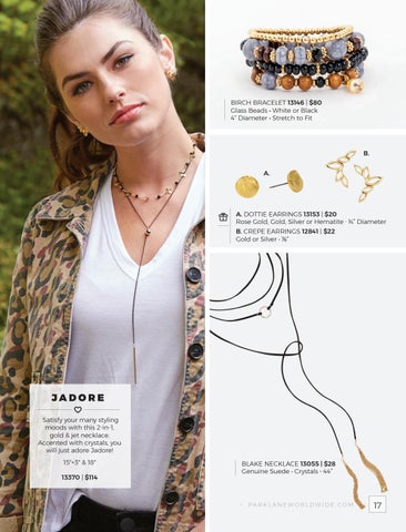 JADORE Satisfy your many styling moods with this 2-in-1, gold & jet necklace. Accented with crystals, you will just adore Jadore! 15"+3" & 18" 13370 | $114