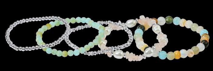 Set of six bracelets - Crystals Wood beads and faceted beads 2 1/2” diameter