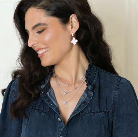 A. B. C. D. E. A. JOLENE EARRINGS 2 1/2" diameter $60 - #13925 E. SUNSET EARRINGS Glass Beads 2 3/4" $62 - #13641 C. BOMBSHELL BRACELET Crystals and Handpainted Enamel Black, Pink or White - Stretch to Fit $218 - #14012 B. ELECTRIC NECKLACE Gold or Silver - 2 in 1 style Crystals - 15" & 17" + 3" $64 - #14004 D. DOMINO RING Titanium Carbide White or Black - Size 6-10 $68 - #13233 F. F. SAFARI BRACELET Genuine Agate Set of 2 - Stretch to Fit $162 - #13820 8 PARK LANE JEWELRY | 2023 STYLE BOOK