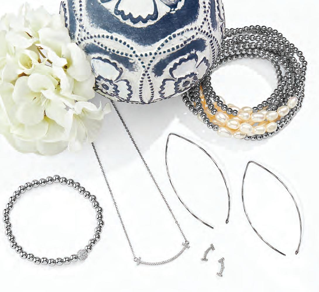 A. B. C. D. E. A. SHEA BRACELET Glass pearls - Stretch to fit 2 1/4" diameter $146 - #14292 E. MATINEE EARRINGS Glass pearls 1/4" $24 - #0892 C. REESE RING CZs Size 6-10 $78 - #13368 B. TRUDY NECKLACE 2 in 1 necklace 16" + 3" - 20" + 3" $90 - #14287 D. HAMPTONS EARRINGS Glass pearls 3 1/4" long $60 - #14296 BUY 2 GET 4 HALF OFF 1