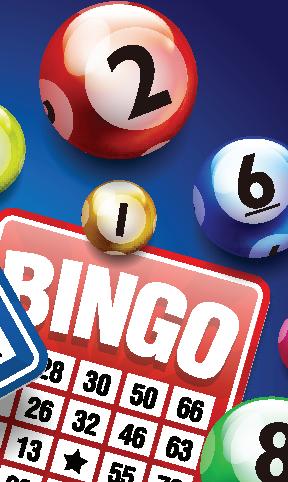Bingo takes place every Sunday at 3 p.m. and Monday–Thursday at 6:30 p.m. in the Ballroom. Admission is free for members and $10 for nonmembers. Members have the chance to win full jackpots and nonmembers can try to win half jackpots. Don’t forget to play every Tuesday and Wednesday to qualify for the monthly member prize give-away.