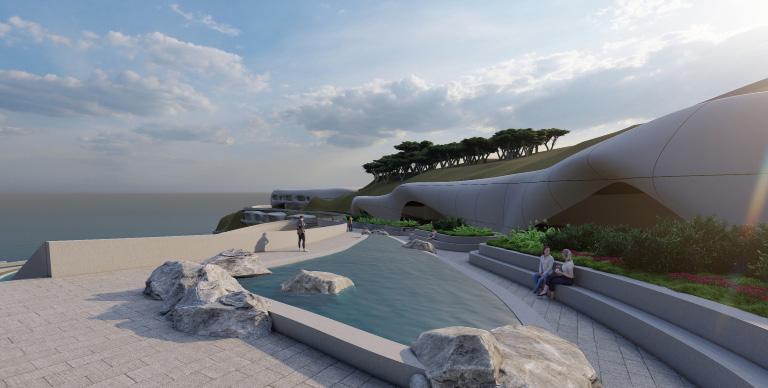 Situated on a ridge overlooking the historical Sutro Baths, the NOAA California Center for Research and Rescue offers researchers, educators, and visitors a space to learn about marine life and activity. The complex is meant to create a sense of wonder, the same way a child may experience while visiting a tide pool. The site is designed in a way that respects the baths and offers optimal views.