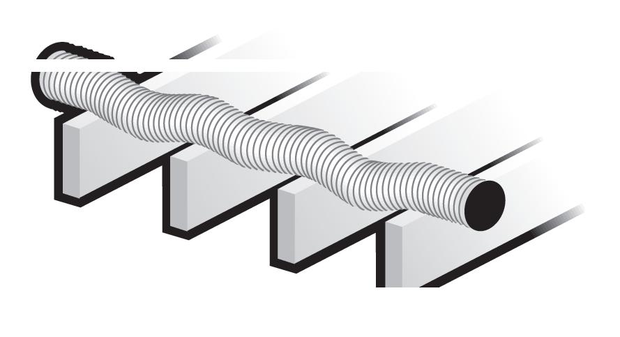 *A straight run over joists is better than the duct ‘dipping’ into each joist bay which will increase static pressure and, eventually, deposit water in the ‘dips’.