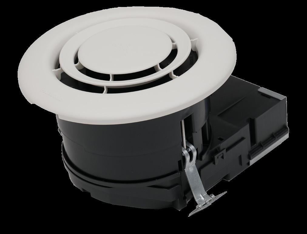 Integrated plastic or metal dampers in all ceiling-mounted applications help prevent backdraft. The built-in metal flanges block air leads through drywall to increase performance.