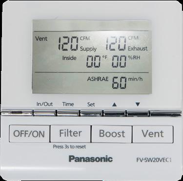 Manual controls: Manual controls require the occupant to activate the ventilation fan when needed. The Panasonic FV-WCSW21