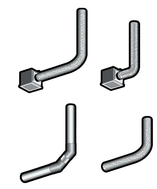 Elbows: Rule number one is to avoid elbows and bends whenever possible. However, the fact is that many installations require at least one elbow, as shown in Figure D. There are two precautions you can take when installing elbows to achieve optimum airflow.