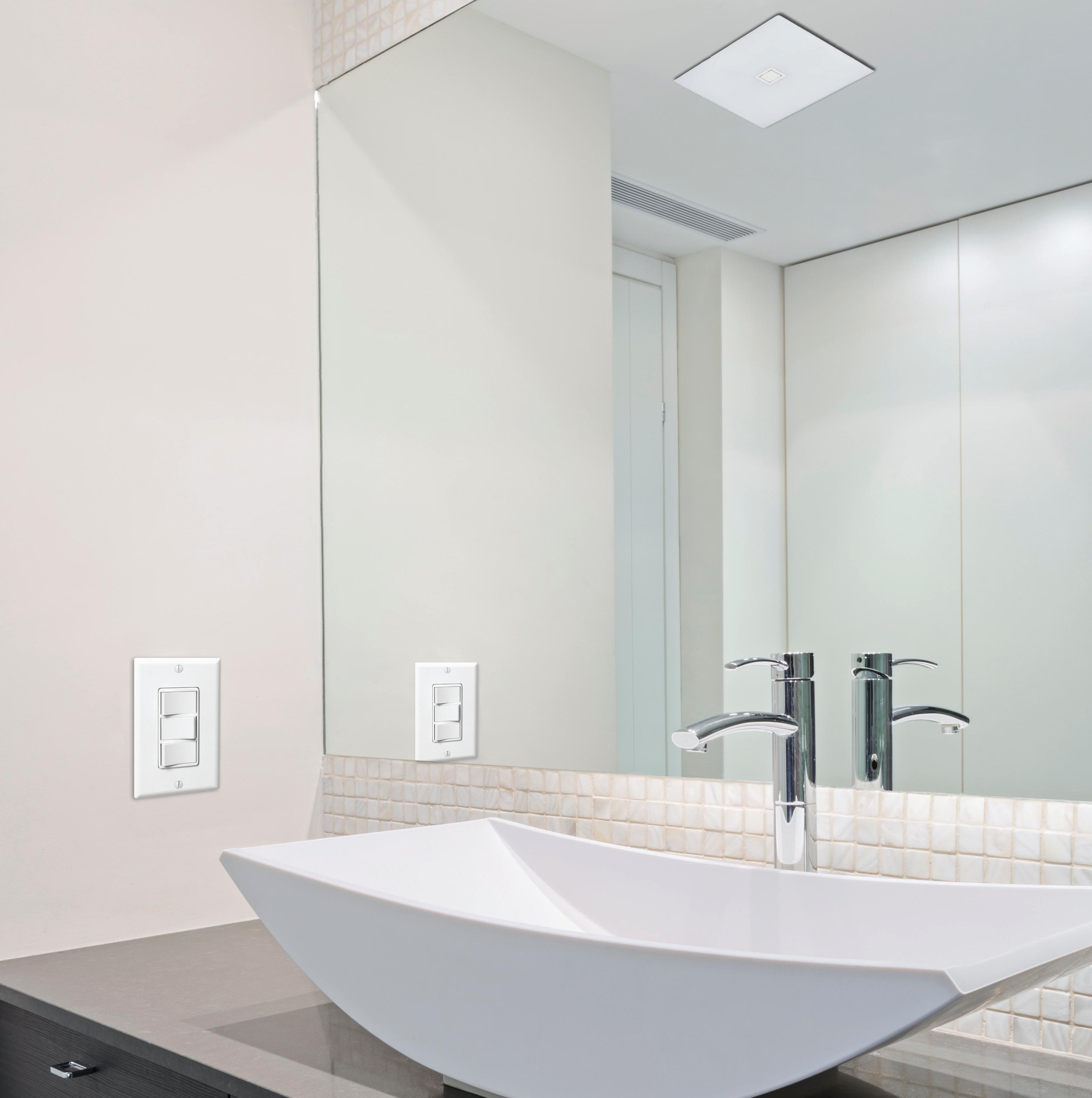 While the humidity sensor checks the amount of moisture at the ceiling, a motion sensor “sees” the occupant coming into the room. The humidity sensor has to be set to either Rate of Rise or Relative Humidity. Depending on how the fan is set up, it may or may not turn on in certain conditions. For instance, if set for Rate of Rise (how quickly moisture builds up in a room), it might not turn on when there is a steady build-up of humidity over time. On the other hand, a motion sensor will go on once it senses motion to capture moisture, odors, and contaminants from the cleaners and chemicals that may be kept underneath the sink. Panasonic’s WhisperSense fans include motion and humidity