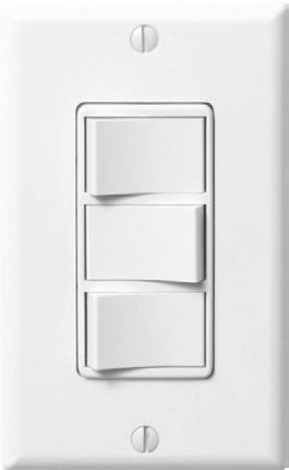 On/Off rocker switch for light and fan control is an example of primary manual control. However, other controls may be more suitable to the occupant's lifestyle. For example, our (S16008WA) 20 – 40 –60 minute timer wall control allows the occupant to either turn the fan off directly or run for a determined time and turn itself off automatically.