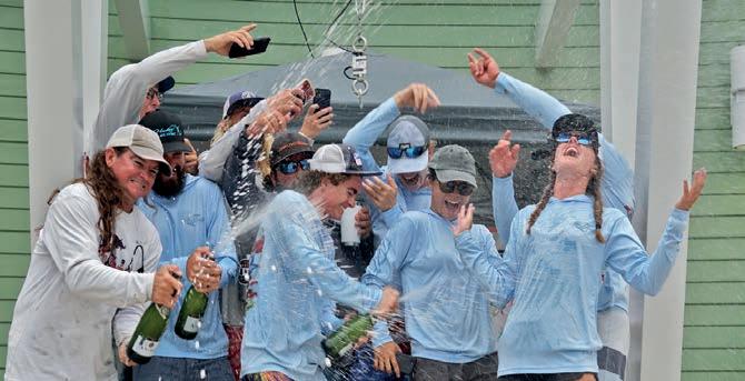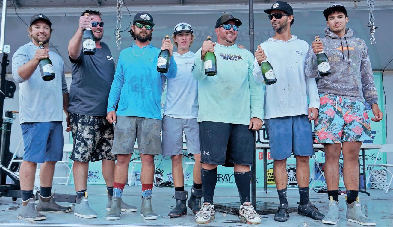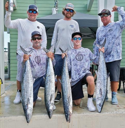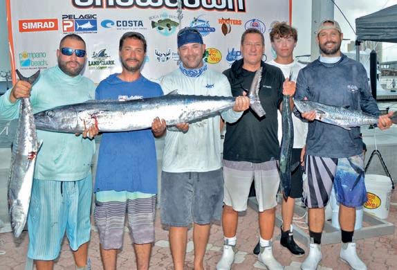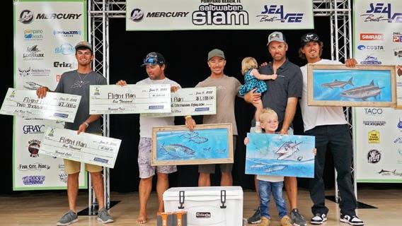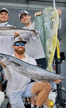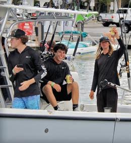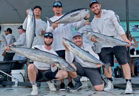 too much pressure on him, and after a 3-minute fight, a bull shark ate what would’ve been our winning fish. We regrouped and reset, putting the baits back out. We caught another king in the low 20s and then were lucky to get another big bite. This time, we were able to catch the fish in a relatively short manner. After the 34.9 kingfish hit the deck, we knew that we had won the rings. We headed back to the scales around 3:30, not thinking our catch would win the tournament, but we were pleasantly surprised to find out that 103.6 pounds was enough to take first place, allowing us to win 2 of the 3 events in the Summer Series. It was definitely a ‘prestino’ day for the SLOB City crew and one that we will remember forever.
