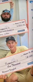 Rounding out the top 3 in the Saltwater Showdown was team Finsanity II. This team is proof that hard work does pay o . They’ve been a consistent participant in the summer series for years and every year their final spot on the leaderboard has only gotten higher by finishing in third place for the Showdown with a total of 87.7 points! Finsanity II also finished in first place for the Big Three (Kingfish, 35) third place Bluewater Bonanza, Bluewater Challenge for heaviest fish of the tournament (Kingfish, 35) first place Holy Mack, first place Kingfish and angler Chris Wedgewood was the Showdown’s Top Male Angler. Bringing Finsanity II’s total winnings to $16,882!