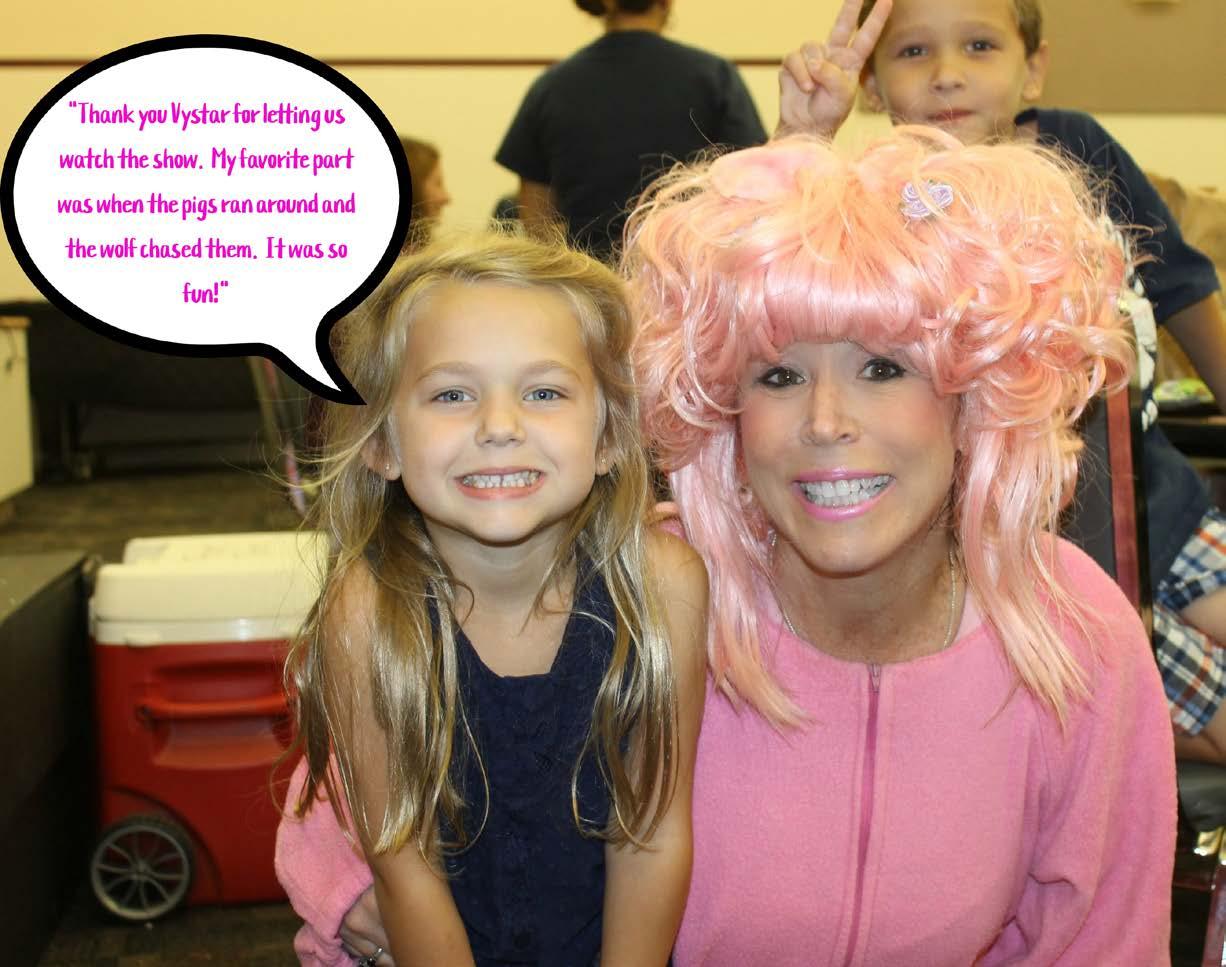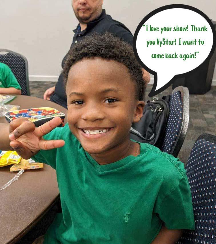 Thanks to the remarkable generosity of our partners at VyStar Credit Union, 6,200+ underserved children from Northeast Florida attended our Magic Wardrobe Theatre programs in 2023. Some of these children never saw a live show before attending Magic Wardrobe and VyStar’s funding allowed us to bus these kids to the JCA to see a show as well as meet and greet our amazing Magic Wardrobe performers. This April, performers put on a very special show for VyStar families and friends to thank their institution for their continuous financial support of our beloved Magic Wardrobe Theatre programs. The VyStar gang enjoyed popcorn, drinks and snack packs while watching the Three Little Pigs and the Big Bad Wolf dance and sing in one of Magic Wardrobe Theatre’s most popular shows!