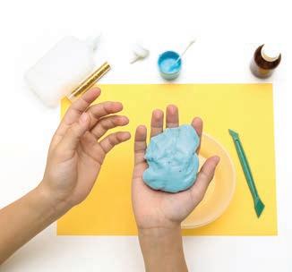 Pour school glue into a small mixing bowl. Add baking soda to the glue and stir until combined. Add a few drops of food coloring to mixture and stir. Continue until the mixture is your desired color. Add contact lens solution to the mixture and stir until it becomes a harder consistency. Once the slime forms a ball in the bowl, the slime is ready! Tip: For a less sticky slime, add an extra 1/4 tbsp/4 mL of contact lens solution to the slime mixture.