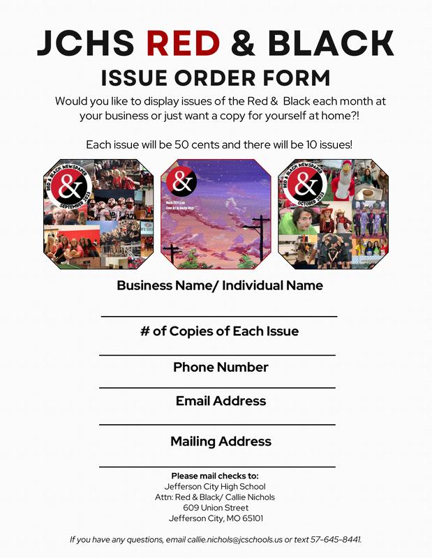 Whatayearithasbeen!Gettingtheopportunitytorestartaspecial traditionatJCHSwastrulyanincredibleexperience.Iāmgratefulforthe supportfromMrs.Nichols,Mr.Gale,andadministration.Withoutthem, AshlynnandIcouldhaveneverdonethis.ThroughRed&Black,Iāvegotten theopportunitytotalkwithawesomepeopleandconnectwithJCHSand thecommunityevenmore.Inaddition,IāmthankfulforalltheRed&Black Staffthatworkhardtocreategreatissues(evenifweareallverybusy). Lastly,IcanātwaittomakeRed&Blackevenbetternextyear!
