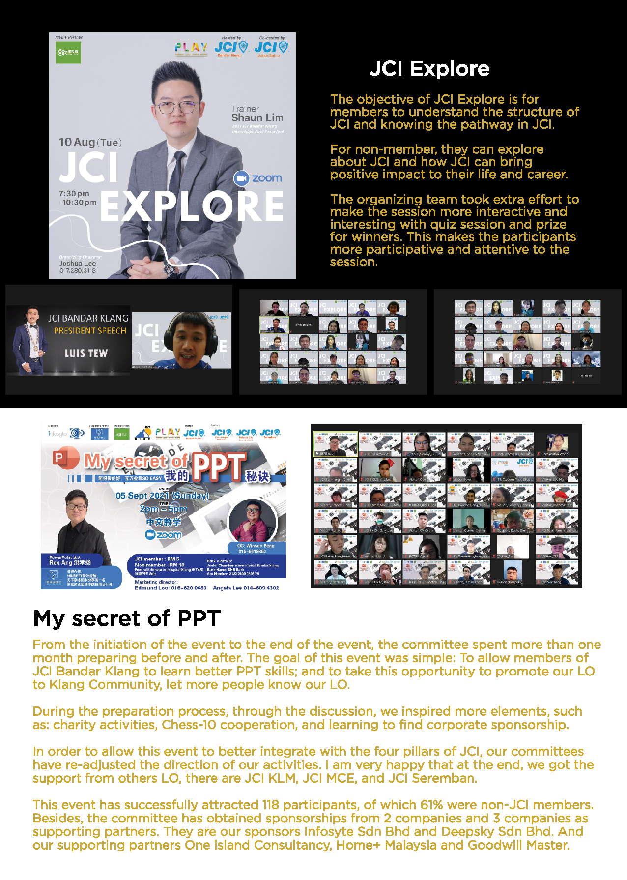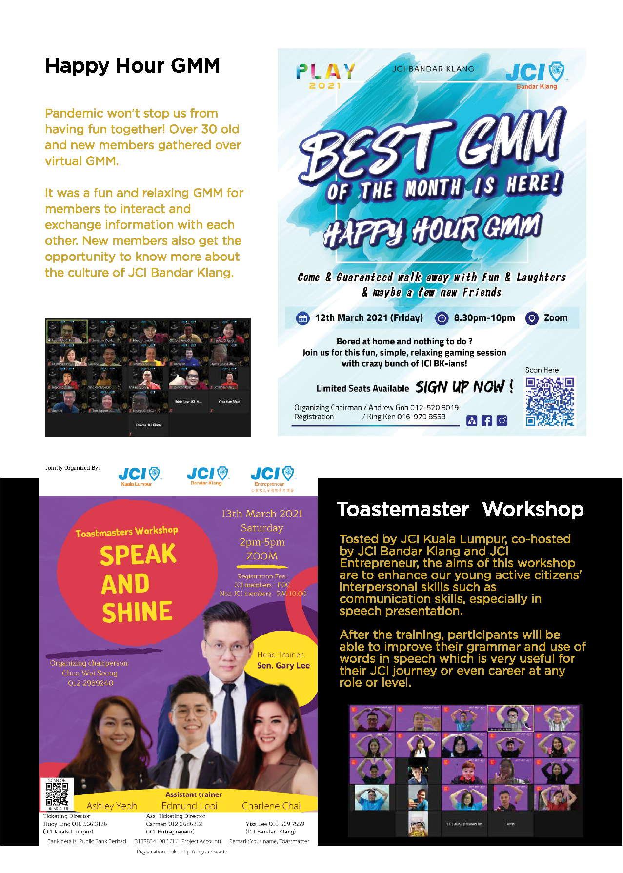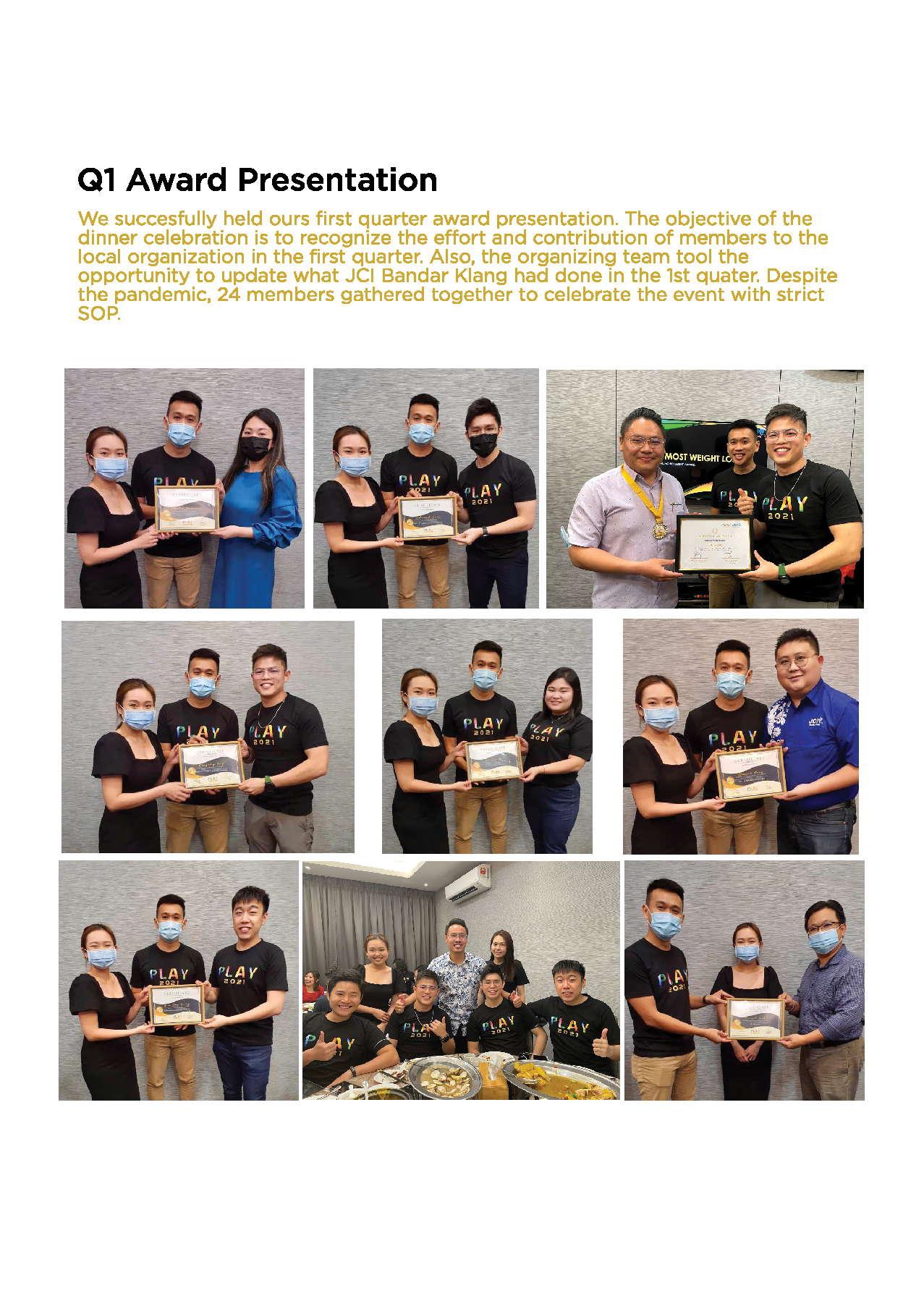 Hereby signing off as 2021 President, I would like to wish all the best to the 2022 Boad of Directors in pursuing a better JCI Bandar Klang tomorrow. Let's PLAY!