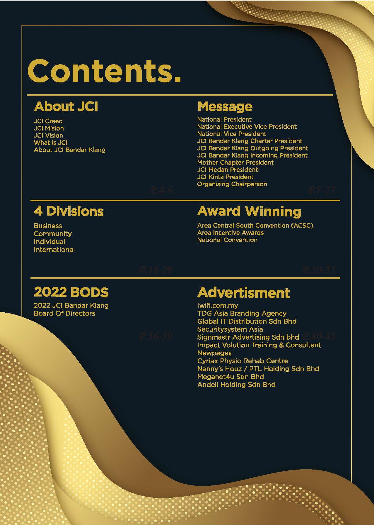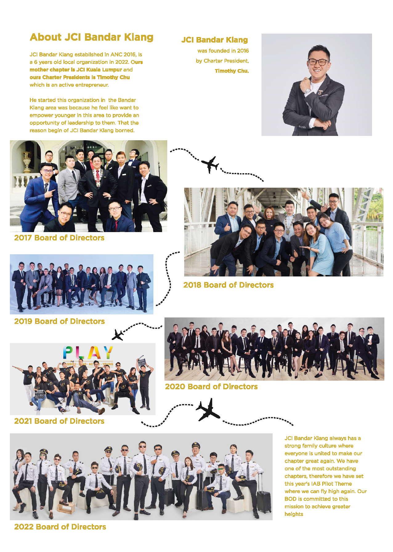 First and foremost, I would like to thank all the members that have given me the trust to lead the Board of Directors in year 2022 for JCI Bandar Klang.
