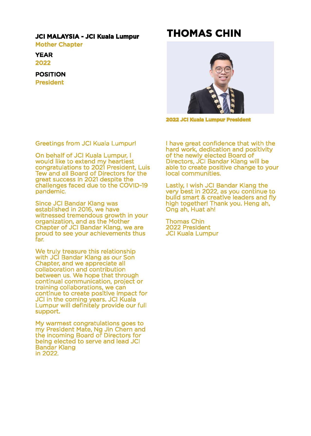 Thomas Chin 2022 President JCI Kuala Lumpur JCI 2082 JGI l(|.h Lumpur Prldd.nt