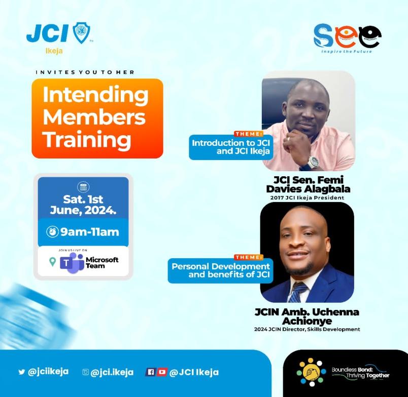 Earlier, on June 1, 2024, we held an Intending Members Training session via Microso Teams. JCIN Amb. Adegoke Adediji welcomed par cipants, and we had special guests including JCIN Amb. Omowunmi Fakoya, JCI Sen. Usman O g