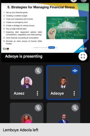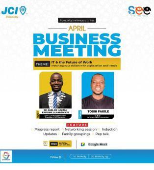 For the first me, JCI Rockcity had an online business mee ng in which we had about 50 people in a endance. We also inducted a new member, Bright Sopekan, into the JCI Rockcity family.