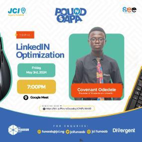 The virtual session wrapped up on Friday 3rd of May with Covenant Odedele, the Team Lead of Students on LinkedIn facilita ng on LinkedIn Op miza on. It enlightened par cipants on the dis nc ve importance of LinkedIn admist other social media pla orms, how to leverage on Links as an undergraduate to get opportuni es and posi on for global relevance, demys fied myths and facts influencing people's percep on and prac cally engaging the audience how to make the most of the pla orm.