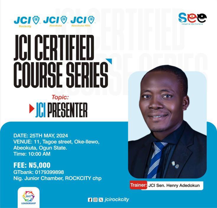 As part of our ongoing efforts to build quality leadership, JCI Rockcity organized a JCI PRESENTER TRAINING on This was May 25th. a physical training session that had 8 par cipants in a endance.