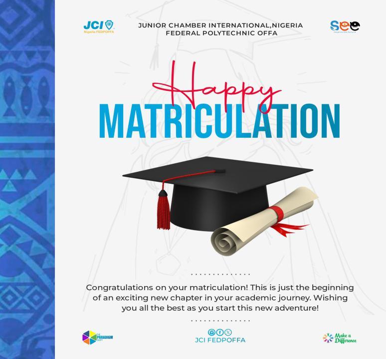 On April 24, 2024, Junior Chamber Interna onal Nigeria, Federal Polytechnic Offa, joined forces with the ins tu on's matricula on ceremony to introduce new students to our humanitarian organiza on!