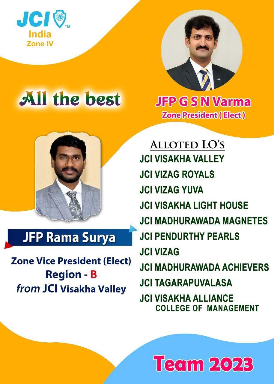 We congratulate JC Prabhakar Botta for being elected as the President of JCIVizagfortheyear2023